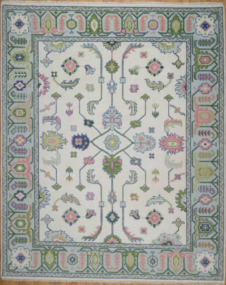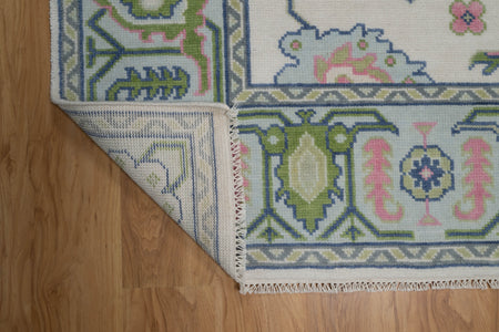 Vintage Turkish Wool Rug - Warm Pink and Celadon Green with Blue and Brown Motif - 170 x 253cm $1,850.00